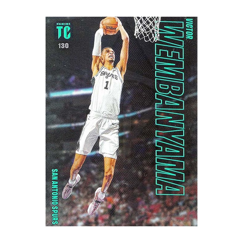 Trading Card de Victor Wembanyama RC del equipo del San Antonio Spurs con el número 130 de la serie básica de la colección oficial NBA Top Class 2024 de Panini.